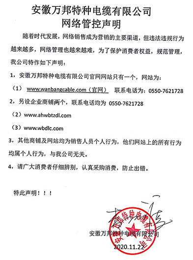 鄭重聲明:安徽萬邦特種電纜有限公司官方網站為:www_wanbangcable_com.liufei-metlife.cn,除此之外無任何子網站或合作網站,其余均為假冒偽劣。電話:0550-7621728 13485756353 地 址:安徽省天長市滁州高新技術產業開發區經四路29號